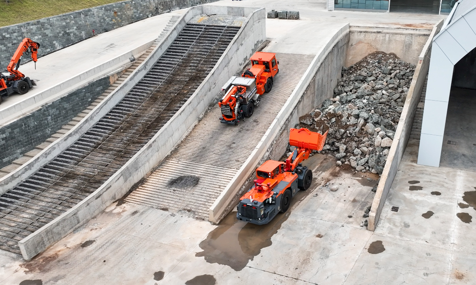 扒渣機(jī)爬坡測(cè)試車間